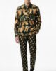 Hergestellt aus einem schwarzgrundigen Jacquardstoff mit kleinem Edelweiss-Muster in Beige und Grün, besitzt die Luigi Hose einen feinen Glanz, der den edlen Charakter des Designs unterstreicht.